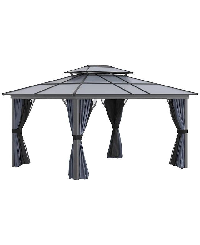Outsunny 10' x 12' Outdoor Steel Frame Gazebo with Twin-Wall Polycarbonate Hardtop Roof and Removable Curtains