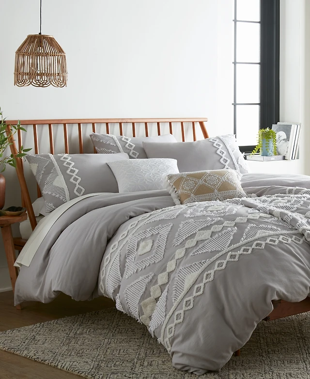 Kaycie Gray Star 3-Pc. Duvet Cover Set, Full/Queen