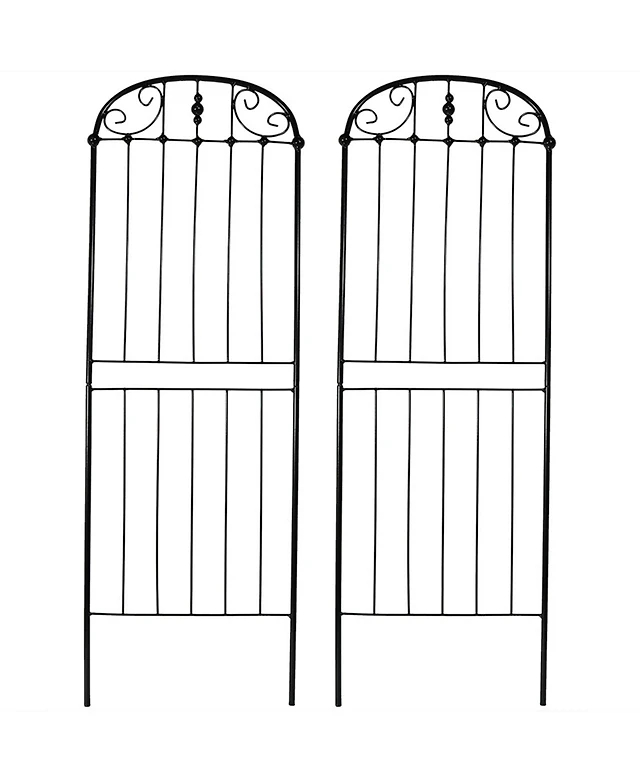 Gothic Arch 6' Set of 2 Decorative Garden Fence Panels - Iron Border Fence - 37" W x 31" H Per Panel - Black