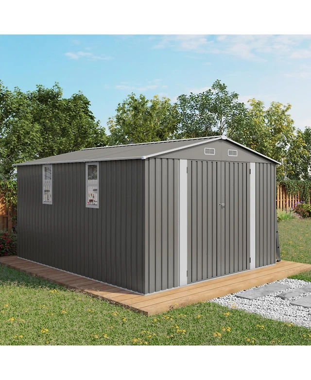 Streamdale Furniture 12x10 Ft Outdoor Storage Shed Metal, Large Garden Tool Sheds with Lockable Doors, Grey