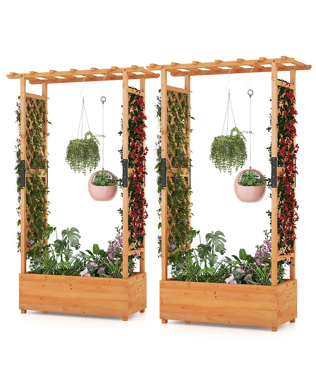 Costway 1 Pcs Wooden Plant Stand Raised Garden Bed with Trellis & Planter Box Privacy Screen