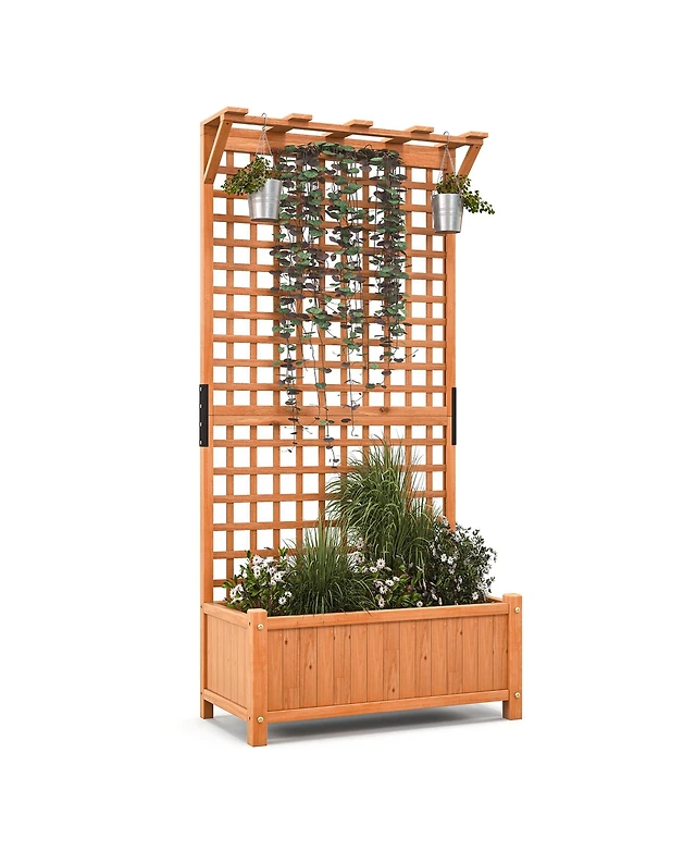 3-Panel Fir Wood Outdoor Privacy Screen with 4 Garden Bed Planters for Patio