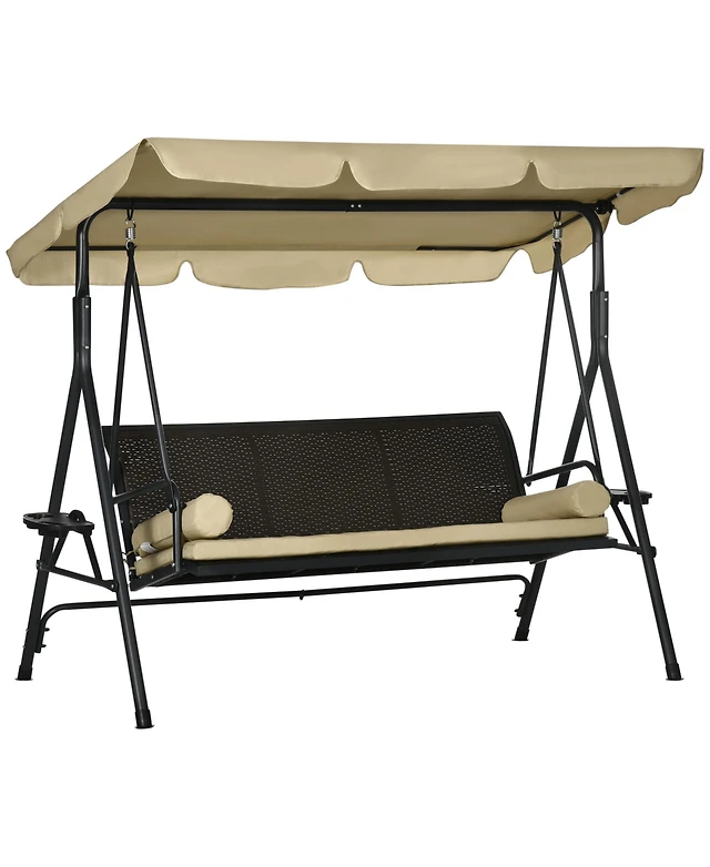 Outsunny 3-Seat Porch Swing with Canopy Outdoor Swing with Cushion, Pillows