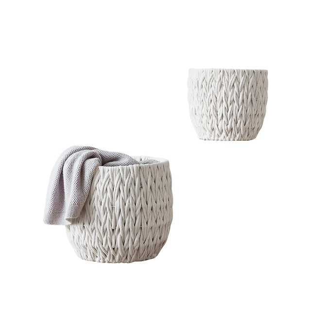 Home Outfitters S/2 V-Weave Round Baskets, White