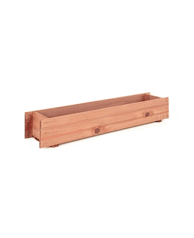 Sugift Wooden Wagon Plant Bed with Metal Wheels for Garden Yard Patio