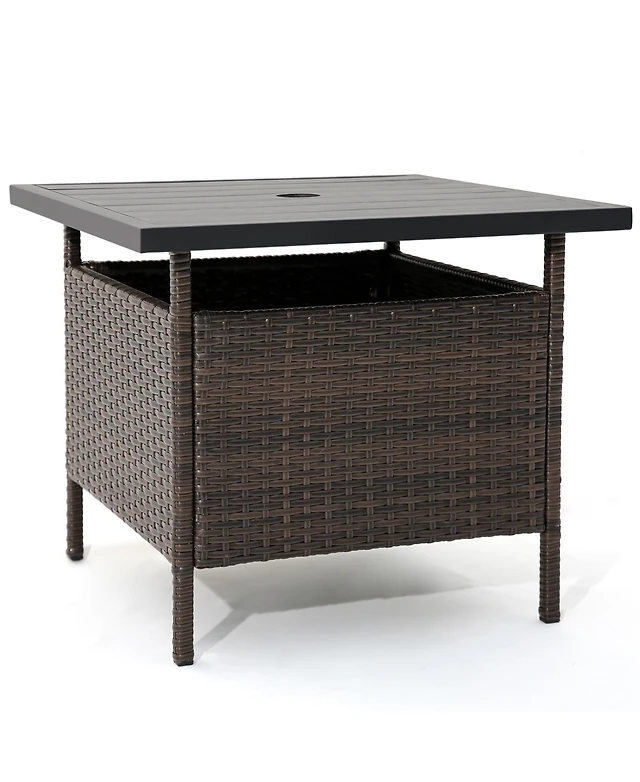 Gymax 9 Pcs Patio Dining Set w/ 8 Chairs Acacia Wood Table Top Umbrella Hole for Yard