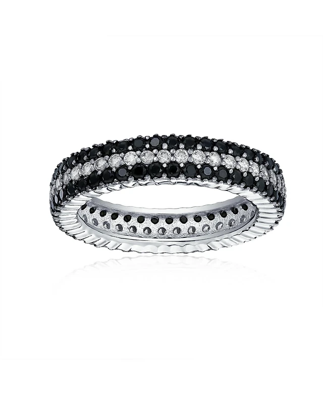 Bling Jewelry Pave Cubic Zirconia Two Tone 3 Row Stripe Cz Statement Black & White Eternity Band Ring .925 Sterling Silver