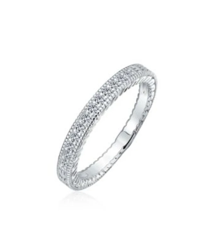 Bling Jewelry Pave Cz Cubic Zirconia Thin Band Ring Etched Milgrain .925 Sterling Silver