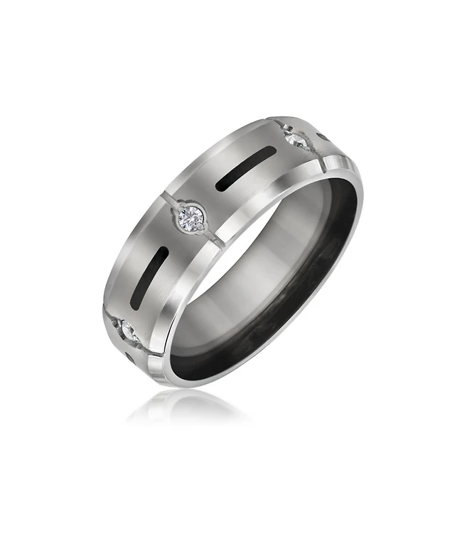 Bling Jewelry Black Inlay Cz Cubic Zirconia Accent Silver Tone Titanium Wide Band Ring