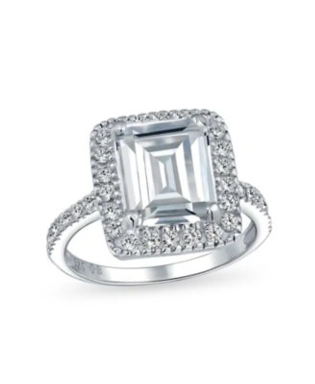 Bling Jewelry Art Deco Style 5CT Statement Cz Halo Emerald Cut Solitaire Promise Ring 1MM Pave Band Sterling Silver