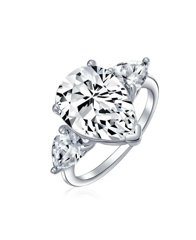 Bling Jewelry 7CT Yellow Cz Pear Shaped Solitaire Teardrop Statement Promise Ring Sterling Silver Cubic Zirconia Trillion Side Stones
