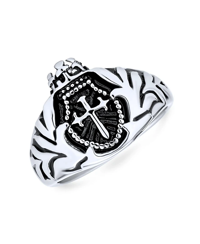 Bling Jewelry Large Medieval Viking Maltase Fleur De Lis Cross Square Signet Band Ring Oxidized Silver Tone Stainless Steel