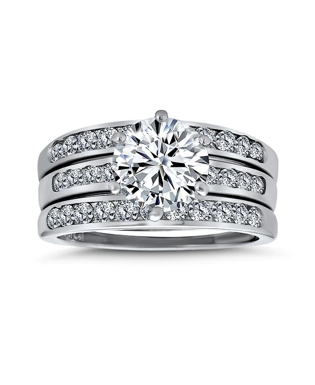 Bling Jewelry 3.5CT Round Solitaire Cz 3 Row Pave Band Guard Enhancers Promise Ring Set Sterling Silver