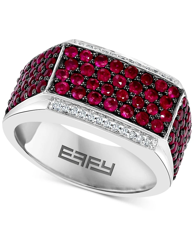 Effy Men's Ruby Cluster Ridge Texture Ring (1-1/20 ct. t.w.) in 14k Rose Gold-Plated Sterling Silver