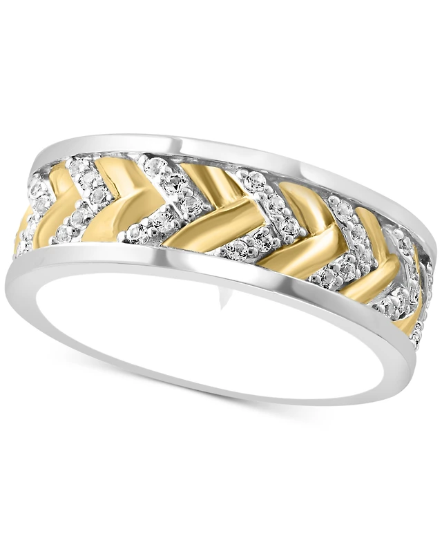 Now + Forever Men's Diamond-Cut Geometric Wedding Band 10K Two-Tone Gold 6mm