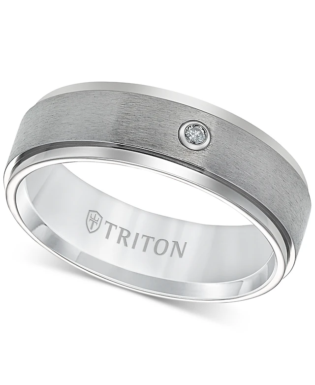 Triton Men's Tungsten Carbide Ring, Single Diamond Accent Wedding Band