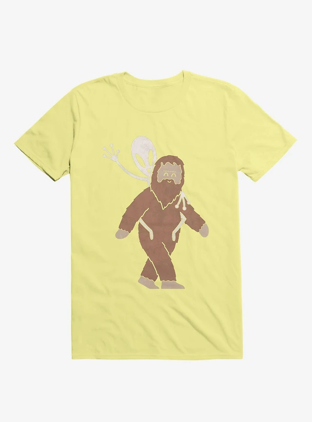 Alien And Sasquatch Piggyback Corn Silk Yellow T-Shirt
