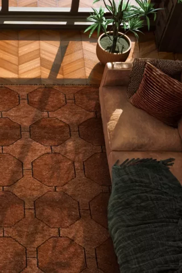 Saffron Fabs Geometric Non Skid Cotton Bath Rug