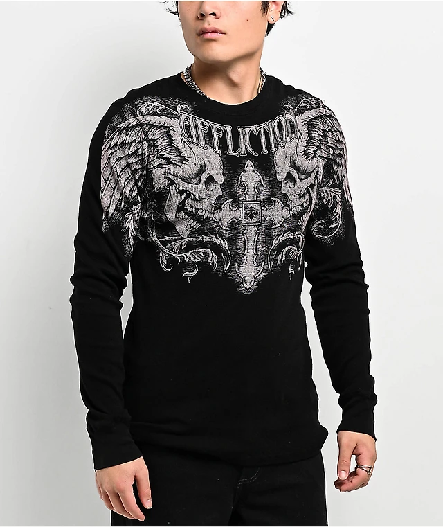 Affliction Winged Up Black Thermal Long Sleeve T-Shirt