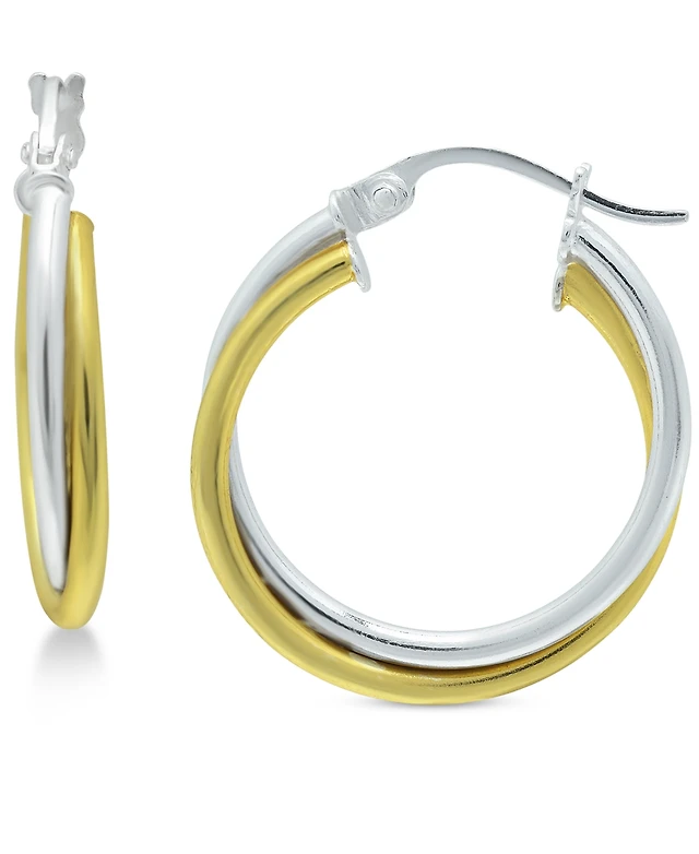 Giani Bernini Medium Two-Tone Double Hoop Earrings in Sterling Silver & 18k Gold-Plated Sterling Silver, 1.5", Created for Macy's