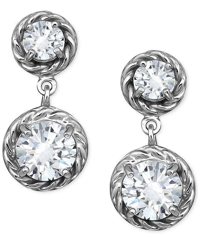 Giani Bernini Round Channel Set Cubic Zirconia Linear Fish Hook Drop Earrings