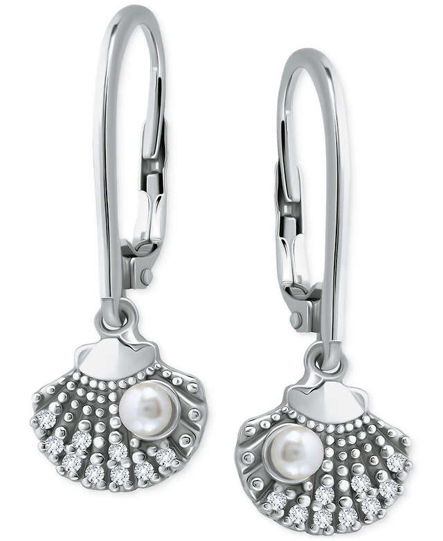 Giani Bernini Cultured Freshwater Pearl (7mm) & Cubic Zirconia Chain Drop Earrings 18k Gold-Plated Sterling Silver (or Silver), Created fo