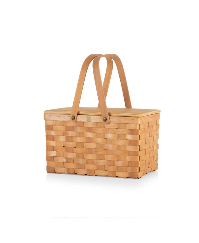 Picnic Time Kansas Handwoven Wood Picnic Basket