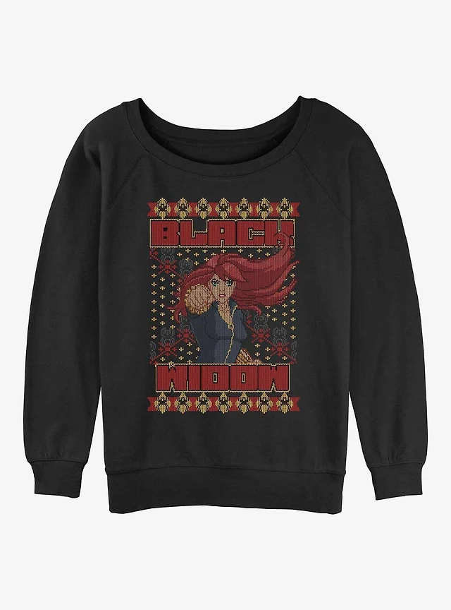Marvel Black Widow Power Punch Ugly Christmas Girls Slouchy Sweatshirt