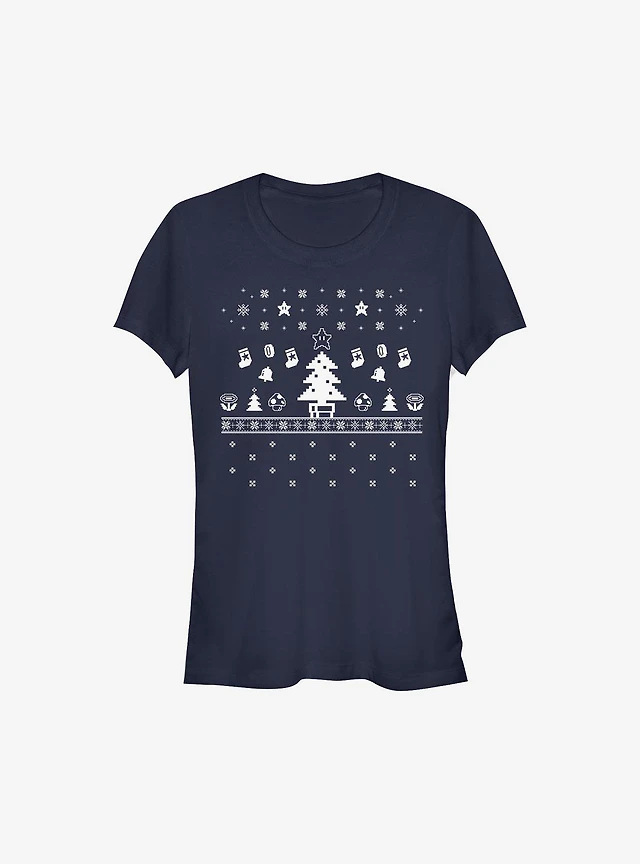 Super Mario White Christmas Girls T-Shirt