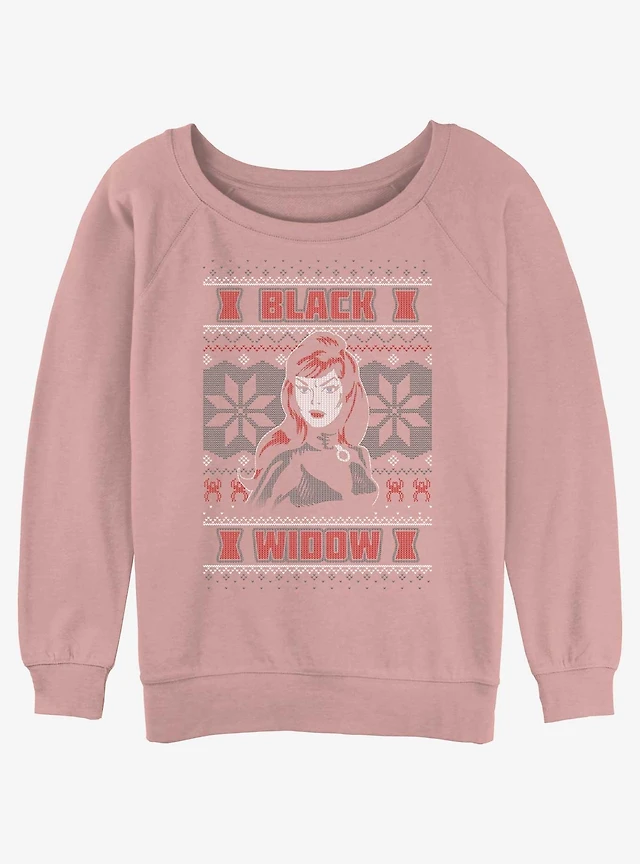 Marvel Black Widow Ugly Christmas Girls Slouchy Sweatshirt