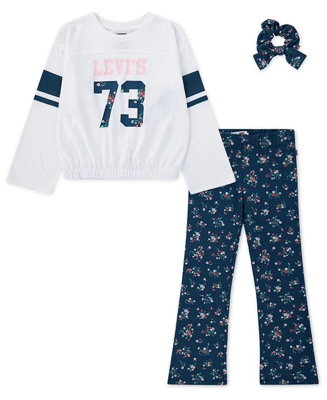 Levi's Little Girls 3-Piece Cinched Top, Flared Leggings and Scrunchie Set