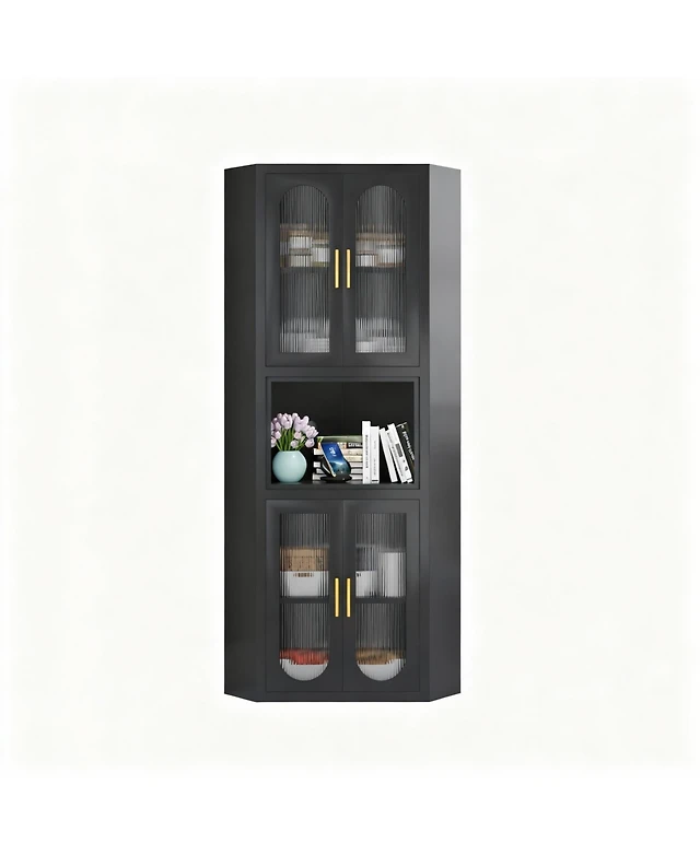 gaomon 67" Tall Storage Cabinet, Tall Bathroom Cabinet with Glass Doors and Adjustable Shelves