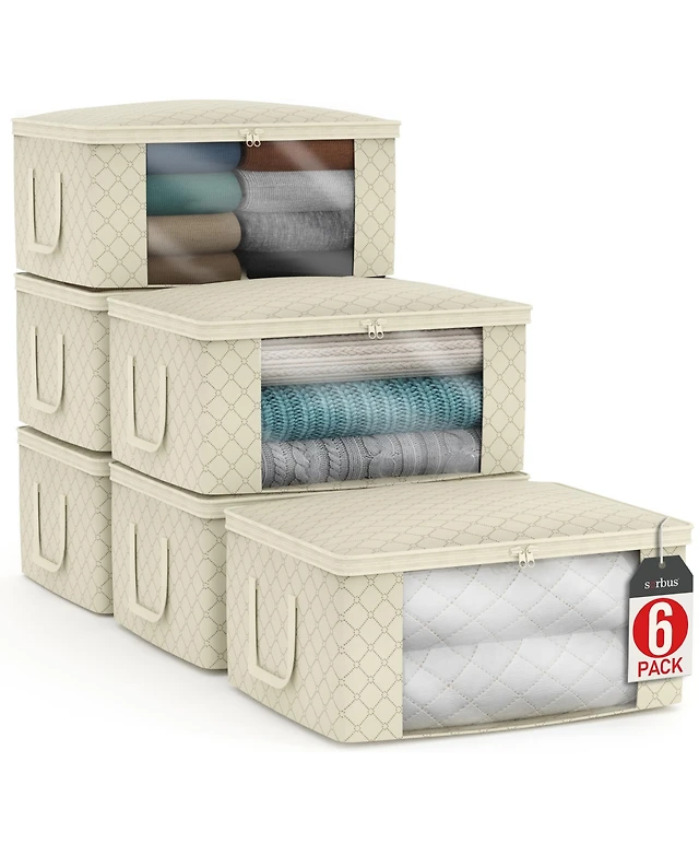 Sorbus 6 Pack Medium Foldable Clothes Storage Bags with Clear Window, Zipper Lid and Carry Handles - for Organizing Bedroom, Closet