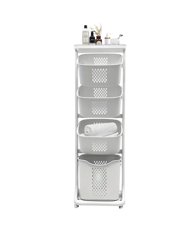 Rainsken 4-Tier Laundry Hamper Sorter, Vertical Laundry Baskets with Wheels, Removable, Stackable Laundry Cart, Laundry Storage Organizer for Dorm