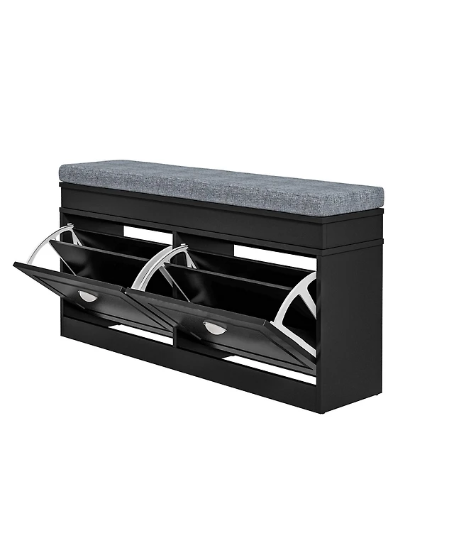 Rainsken Shoe Cabinet with Doors, 5-Tier Shoe Storage Rack with Black Handle, Circular Louvered Door Design, Shoe Organizer for Entryway, Living Room
