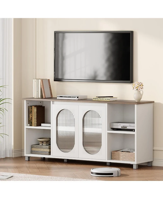 Gaomon 70 in Modern Tv Stand with Glass Doors Entertainment Center , Sturdy Wooden Media Console with Storage Shelves, Living Room & Bedroom