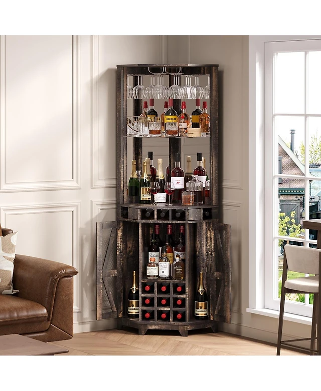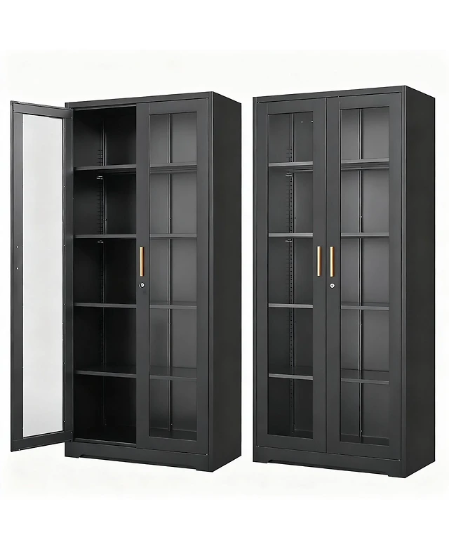 Streamdale Furniture 70.87" Display Cabinet, 4-Tier Pull-Out Shelf, 2 Glass Doors