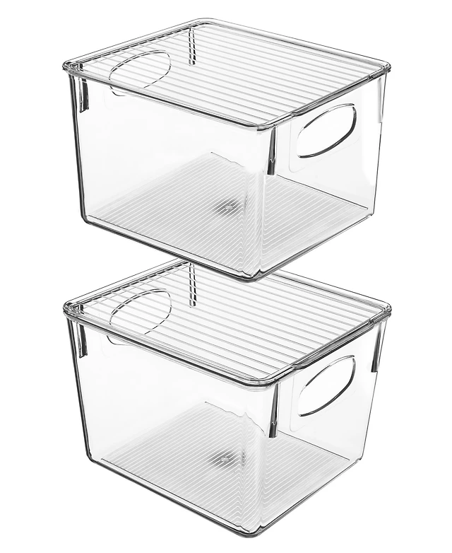 Sorbus 2 Pack Small Clear Storage Bins with Handles and Lids - for Kitchen, Cabinet Organizer, Pantry & Refrigerator