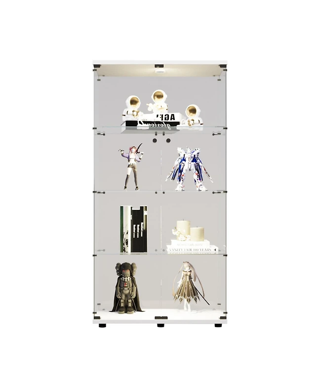 Modern 4-Tier Glass Door Cabinet with 5-Tier Storage for Home