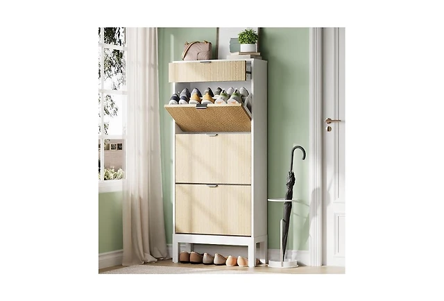 gaomon Shoe Cabinet with 2 Flip Drawers & 1 Top Drawer, Wooden Shoe Storage Organizer, Adjustable Shelves, Hidden Cabinet for Hallway or Living Room