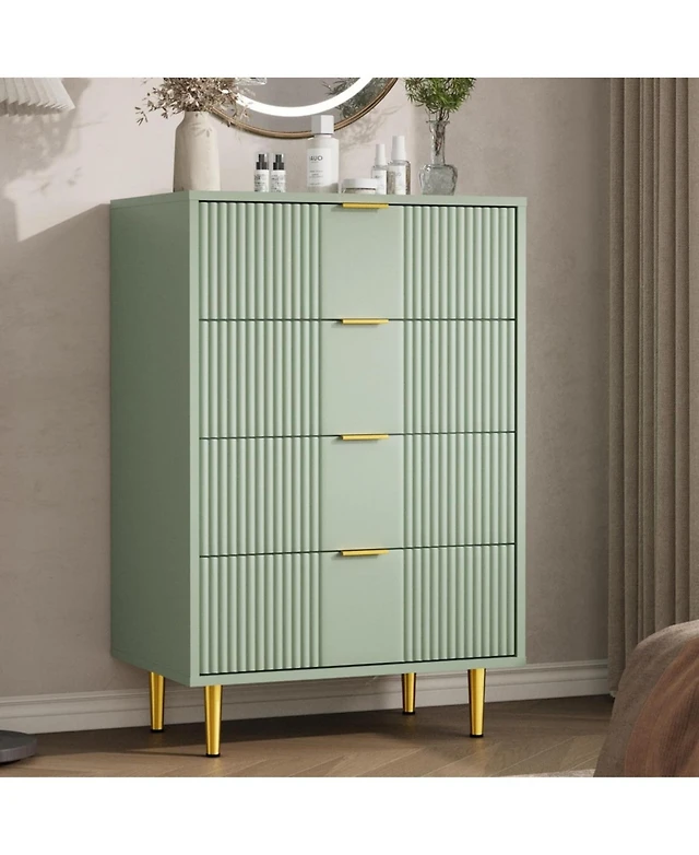 gaomon 4 Drawer Dresser Set of 2 for Bedroom, Modern Closet Dressers Chest of Drawers, Storage Chest Cabinet Organizer Unit, Small Fluted Nightstand