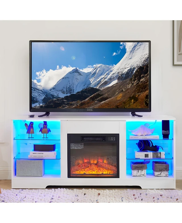 Streamdale Furniture Modern Electric Fireplace Tv Stand with Glass Shelves