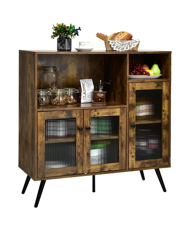 Simplie Fun Modern Mdf Buffet Cabinet with Glass Doors & Marble Top