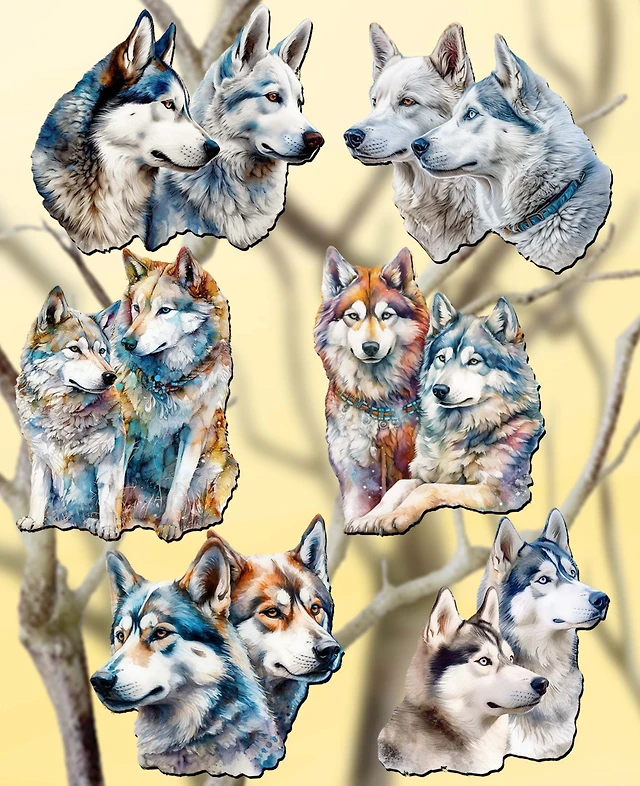 Designocracy Holiday Wooden Clip-On Ornaments The Graceful Huskies Set of 6 G. DeBrekht