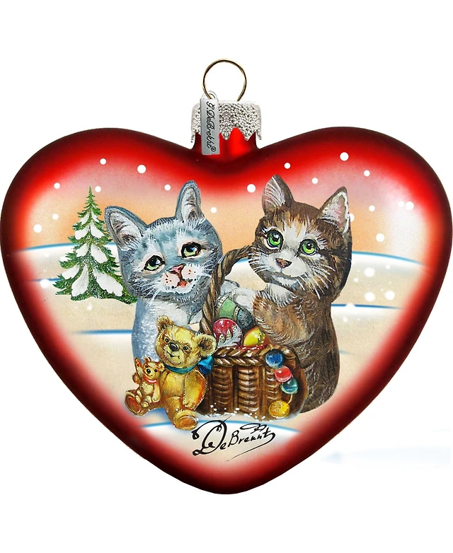 G.DeBrekht Christmas Cuddling Kitties Hand Painted Glass Ornament