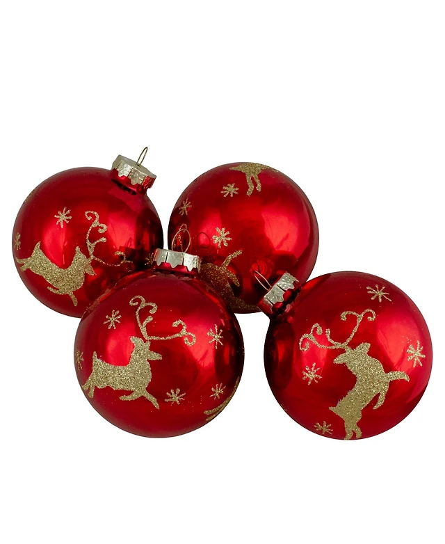 Northlight 3.25" Deer Glass Ball Christmas Ornaments 80mm, Set of 4