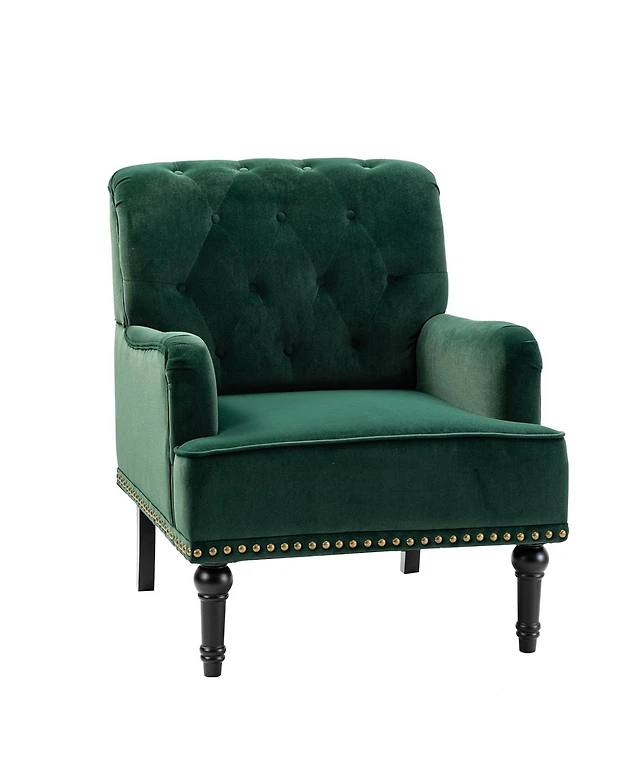 Velvet Tufted Upholstered Armchair with Nailhead Trim