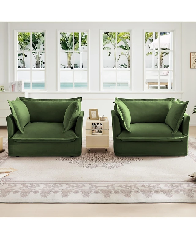 2 Pcs Modern Accent Chair Linen Fabric Armchair with Solid Acacia Wood Frame