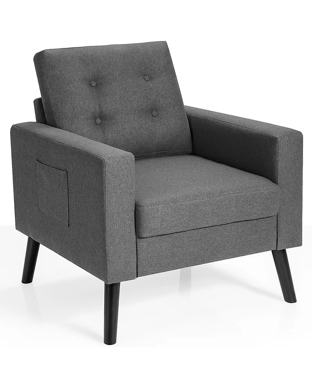 Yaheetech Linen Fabric Upholstered Button Tufted Armchair with Solid Wood Legs with Thick Removable Seat Cushion, Beige