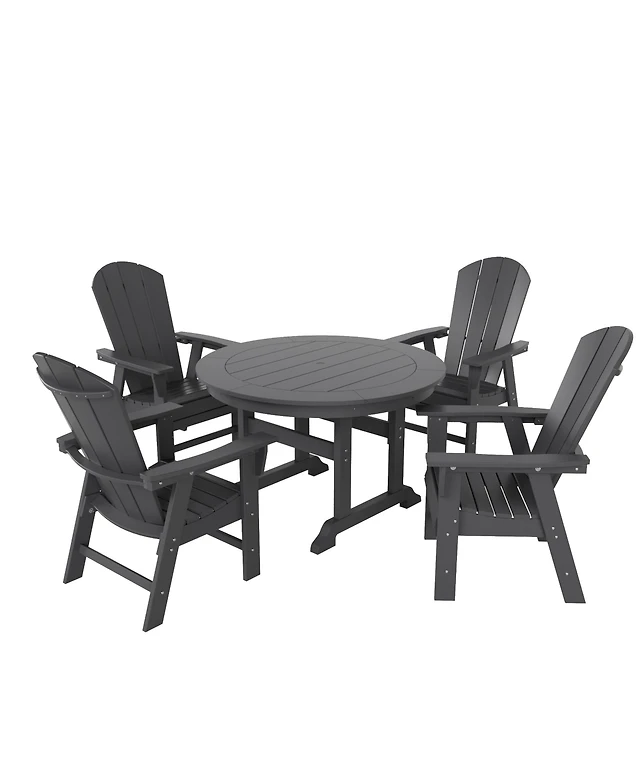 WestinTrends 5 Piece Outdoor Patio Dining Square Table and Curved Back Armchair Set